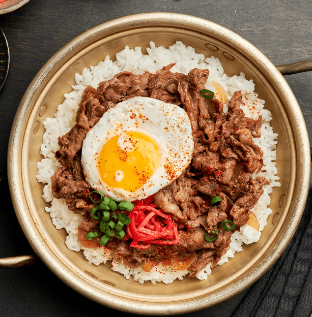 Gyudon is a popular Japanese rice bowl topped with thinly sliced beef simmered in a savory sauce of soy sauce, mirin, and sugar. The beef is usually cooked with onions and served over steamed rice. It’s a quick, affordable, and comforting meal enjoyed throughout Japan.